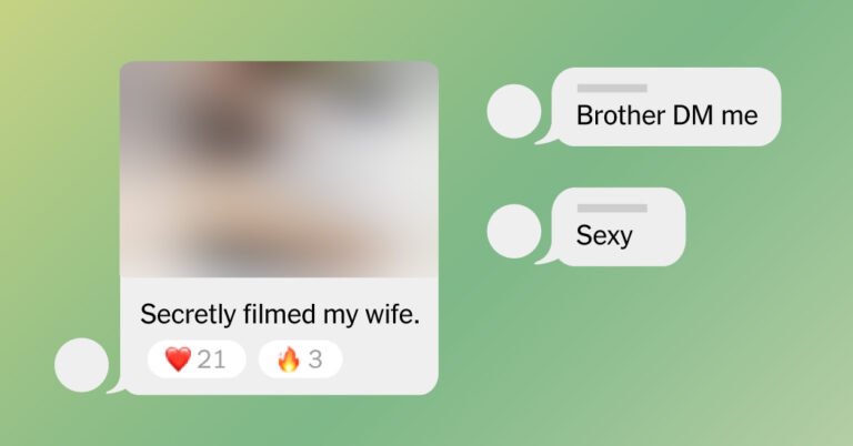 In one group, people post nude or seminude photos of women they describe as their current or former wives or girlfriends. One recent message captioned “secretly taken photos of wife” includes pictures of a woman lounging in a nightgown, lying exposed from the waist down.